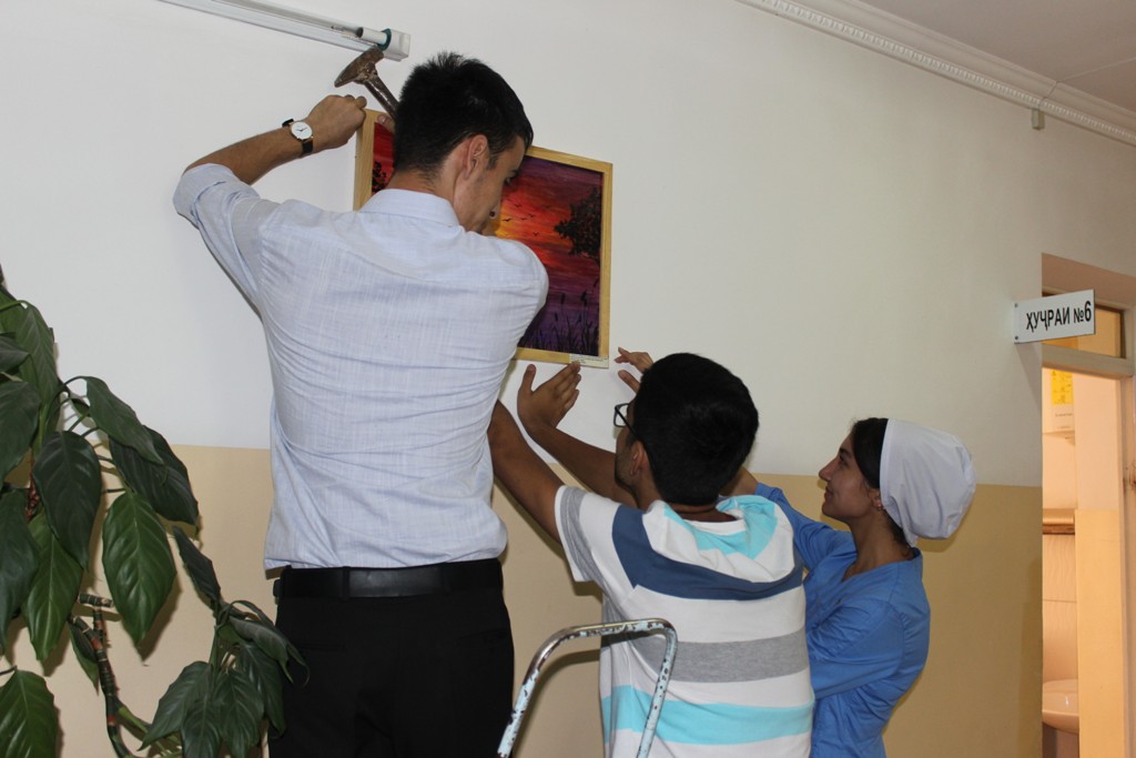 По его словам, вместе с друзьями, выпускниками студии изобразительного искусства Детско-юношеского центра г. Душанбе, под руководством своей наставницы, члена правления Союза художников Таджикистана Аиды Газарян, они решили нарисовать картины и украсить стены онкоцентра.