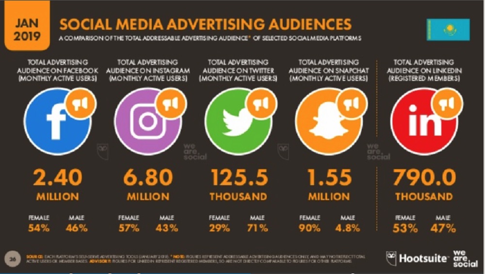 Другое отличи Казахстана в том, что жители страны активно пользуют Snapchat: здесь 1,5 млн. активных пользователей Snapchat, в то время как в других странах это число незначительно.