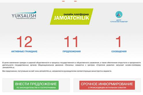 В Узбекистане запущена онлайн-платформа Jamoatchilik.uz, где граждане могут публиковать свои предложения по совершенствованию законодательства, а также сообщать об актуальных событиях. Инициаторами проекта выступили общенациональное движение «Юксалиш» и центр «Стратегия развития», сообщает ИА Фергана.