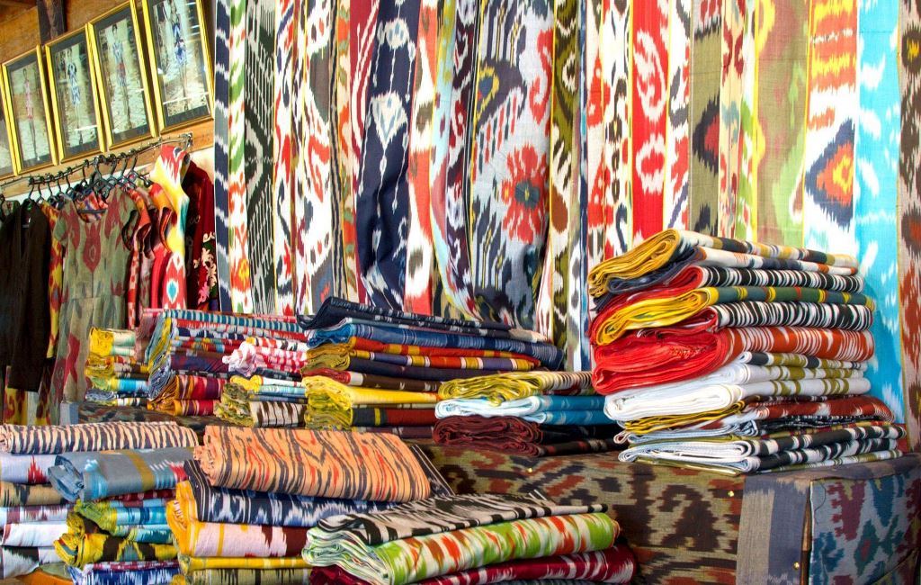 Помимо отреза ткани, в Таджикистане можно закупить также разные аксессуары с национальным орнаментом – шарфы, сумки, косметички и пр.