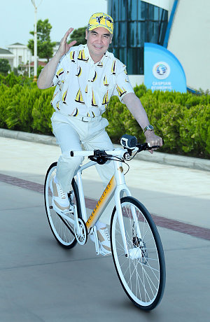 Президент проследовал далее на велосипеде, отмечает издание, прилагая фотографию Бердымухаммедова на велосипеде.