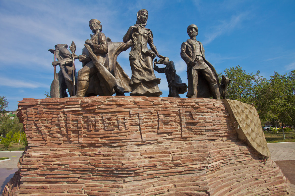 Осенью 2008 года в Актобе была установлена скульптурная композиция, посвящённая героям трилогии. Впереди идёт Еламан — страдалец за правду, за ним справа его друг конокрад Кален. Дальше находится сплетница Каракатын и ещё один отрицательный герой — Судр Ахмет. С другой стороны за Еламаном идет Суйеу, за ним — неверная жена Еламана Акбала. Бай Танирберген стоит отдельно от всех и одной ногой держит рыболовную сеть, ведь он в книге не разрешал людям ловить рыбу. Последней скульптор создал собаку бая Караканшык, которая с жалким видом смотрит на хозяина и будто спрашивает: «Что дальше будем делать?»