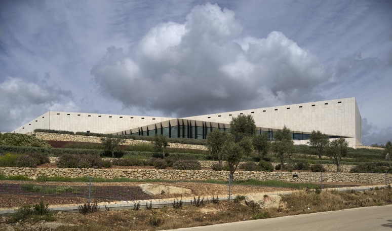Зигзагообразные формы архитектуры Музея и садов на склонах холмов вдохновлены окружающими сельскохозяйственными террасами, подчеркивающими связь между землей и Палестинским наследием.