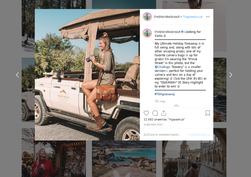 Жительница Калифорнии ведет свой Instagram под названием «Блондинка за рубежом» (theblondeabroad). Сейчас она путешествует по Италии, а до этого она уже успела побывать в более 50 странах мира и повидать очень много интересного, свидетелями чего стало почти 600 тысяч подписчиков.