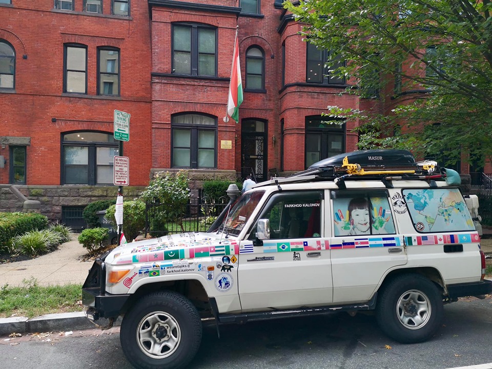 «На этот раз я уже приехал через все границы 51-й страны на машине с таджикскими государственными номерами и нашим родным национальным флагом. Так было здорово ощутить кусочек Родины в такой далёкой стране, как США. Испить горячего зеленого чая из таджикских пиалушек. Попробовать наш знаменитый «чахзу-магз», таджикские сушенные сухофрукты. И непринужденно побеседовать с г-ом послом о Родине, о путешествии, странах, таких разных культурах и обычаях…», — написал путешественник.