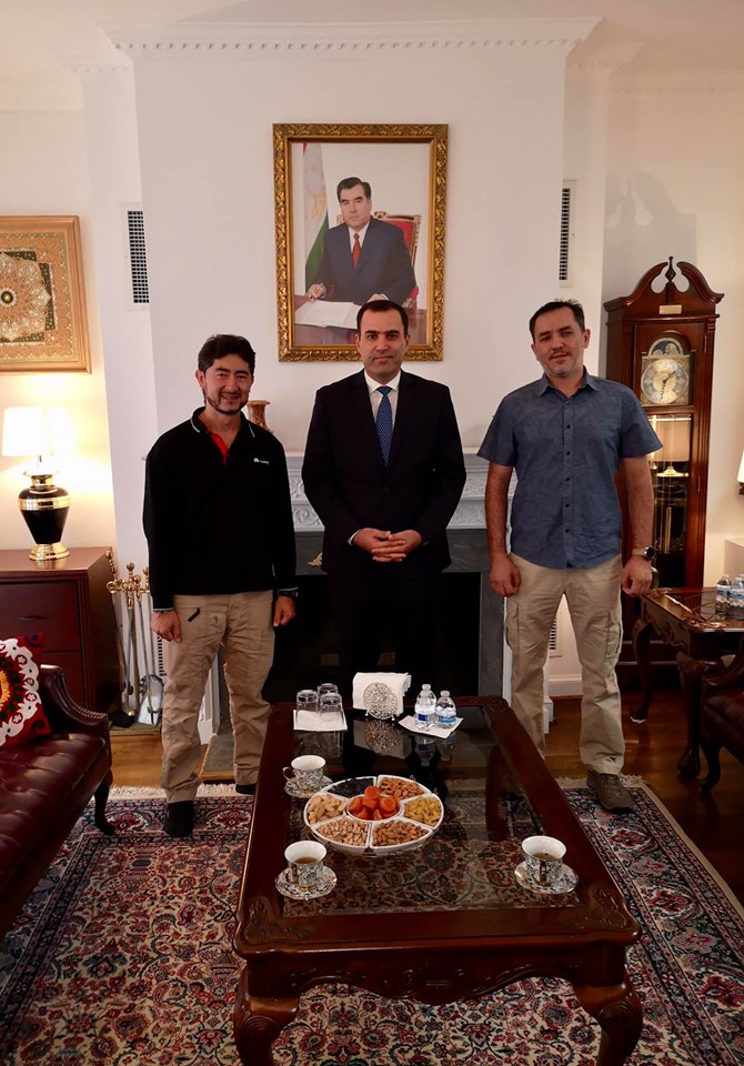 По его словам, три года назад в проекте «Мы Таджики-3, Путь на запад» он с Mansur Ostanaev уже приезжали в посольство на двух американских мотоциклах с таджикскими национальными флагами.