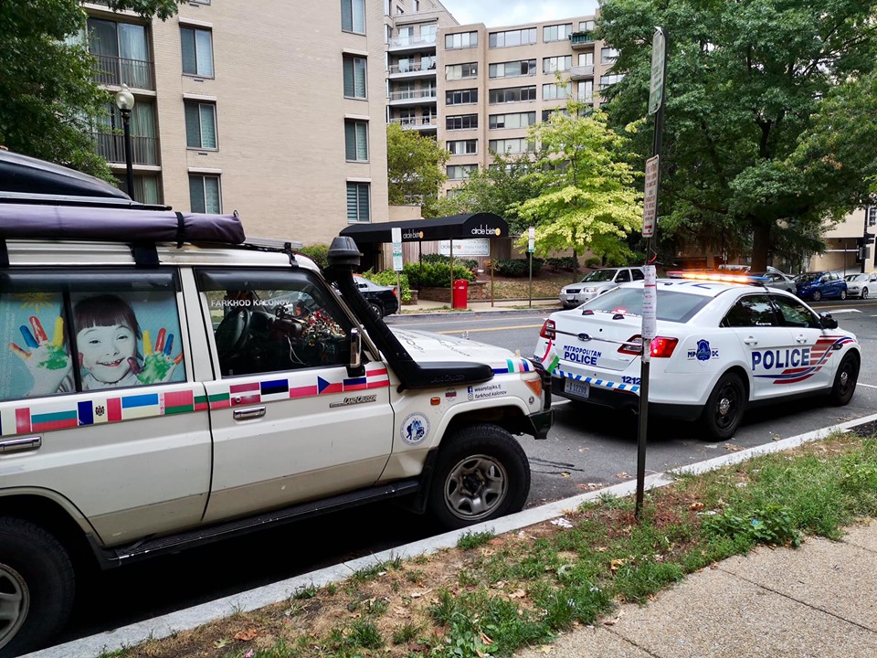 Таджикский байкер и путешественник Фарход Калонов на этой неделе доехал до Вашингтона и побывал в гостях таджикского диппредставительства в США.