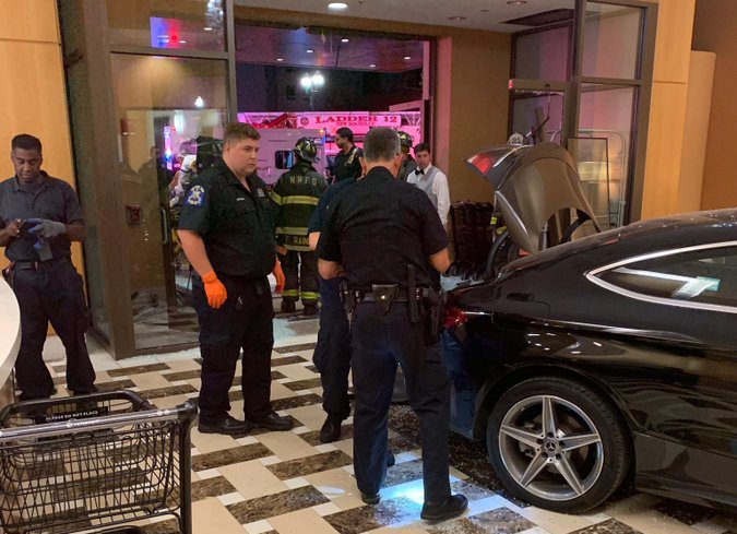 Очевидцы рассказывают, что черный «Мерседес» врезался в двери холла высотного здания, залетев внутрь и разбив стекло. По словам Тони Айелло, репортера CBS, транспортное средство получило серьезные повреждения, а водитель (его имя пока не обнародовано), вышел из машины и сел на диван в лобби здания. Мужчина был в крови.