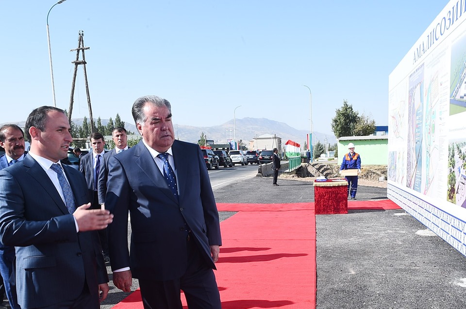 Президент Таджикистана Эмомали Рахмон в рамках рабочей поездки в Файзабадский район 20 сентября ознакомился с проектом строительства современного посёлка «Сомониён».