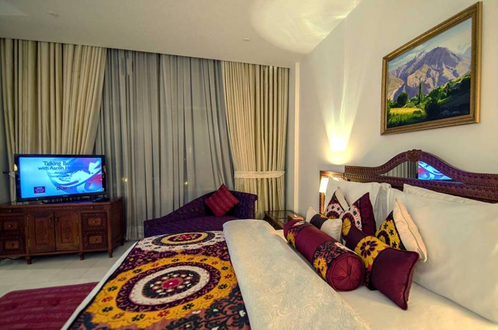 Интерьер 5-тизвездочной гостиницы в центре Душанбе хранит таджикское архитектурное наследие.