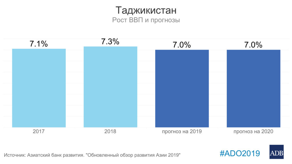Аналитики АБР в апрельском «Обзоре развития Азии» прогнозировали республике в 2019 году экономический рост на уровне 7%, а в 2020 году — 6,5%.