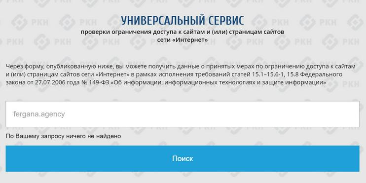 Сайт «Ферганы» исключен из реестра запрещенных ресурсов Роскомнадзора. Это подтверждает сервис проверки ограничения доступа к сайтам в России, сообщает ИА «Фергана».