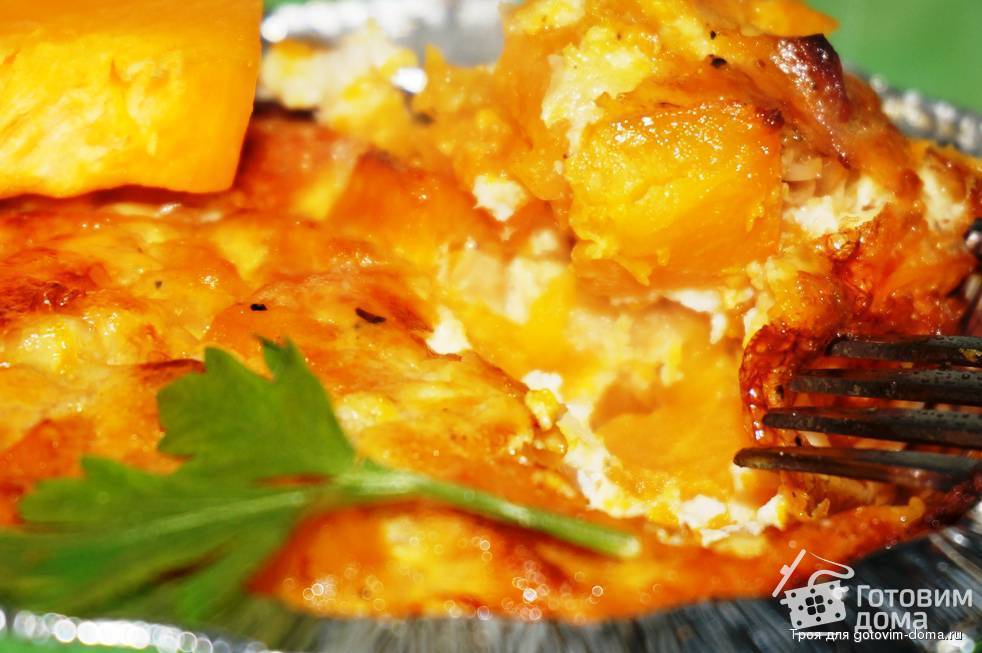 Рецепт: прежде всего надо тыкву очистить от кожуры, удалить семена, мякоть нарезать ломтиками и припустить в масле (2 ст. ложки), затем добавить сырые яйца, перемешать и запечь в духовке на смазанной маслом сковороде.