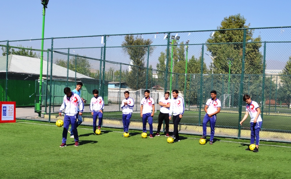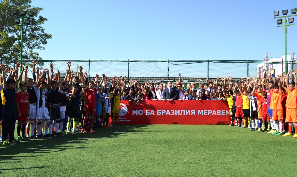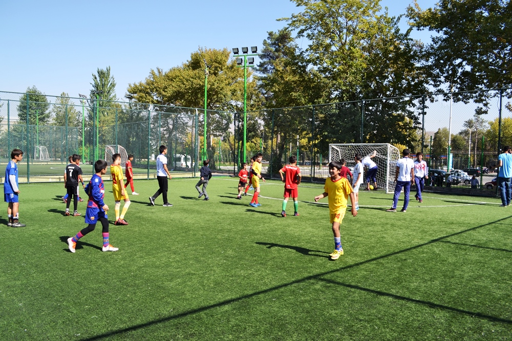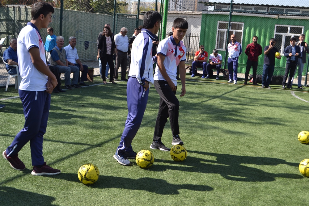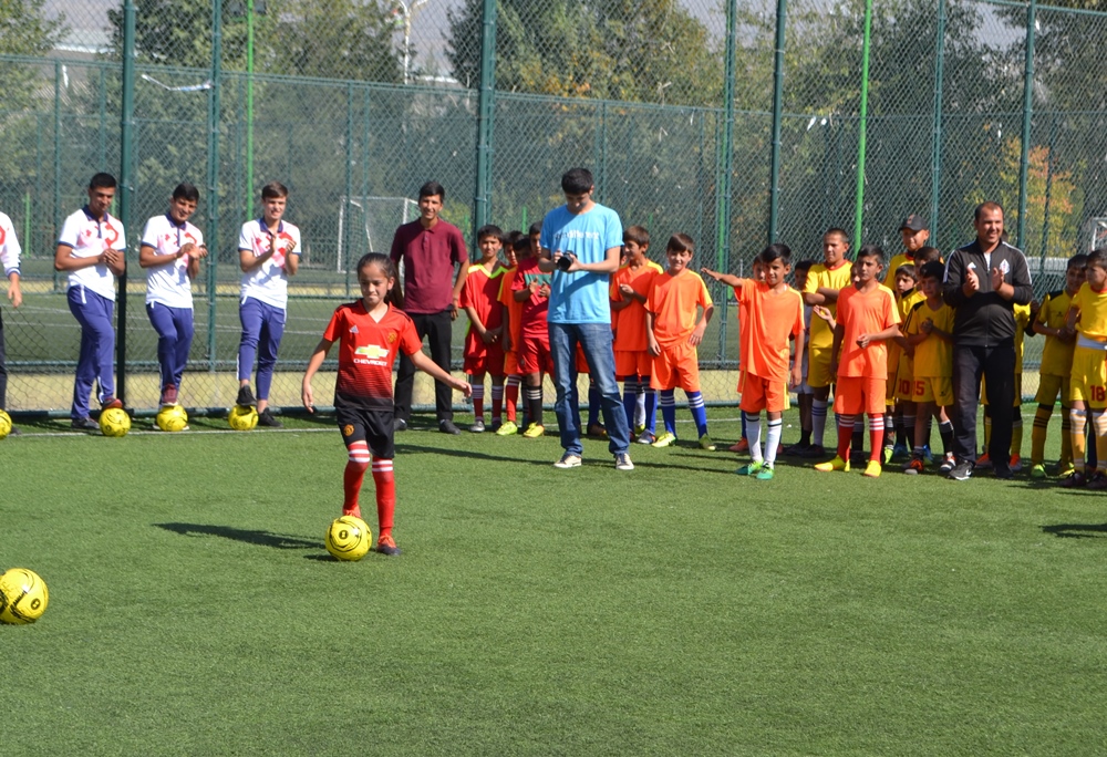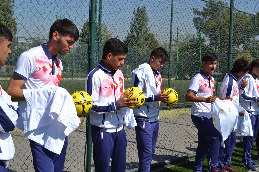 В рамках футбольного праздника игроки юношеской сборной Таджикистана (U-17) провели мастер-классы для детей, были проведены викторины и спортивные игры, победители которых получили из рук футболистов мячи и памятные футболки.