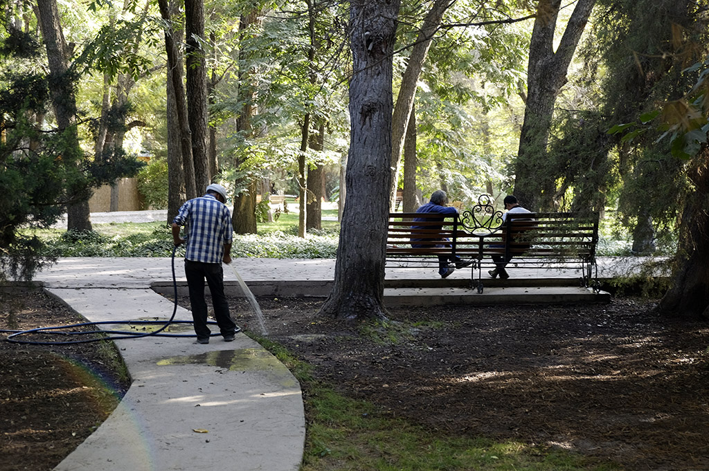 Свои двери "Боғи Ирам" открывает в 5 утра. «Много желающих с раннего утра побегать по дорожкам, для них мы и открываемся так рано. Также для спортсменов у нас есть в нижней зоне сада более 100 тренажеров», — говорит он.