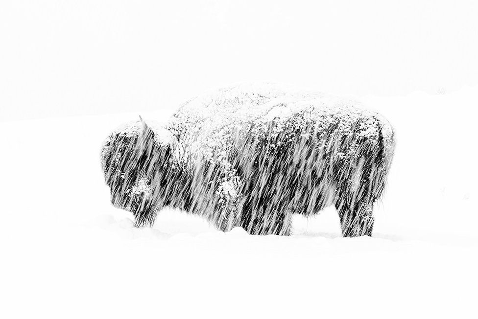 Победитель WPY-2019 в категории "Черное и белое". Ни один год на конкурсе не обходится без хорошего снежного снимка. На этом запечатлен бизон в Йеллоустонском заповеднике. Он хочет добраться до травы и осоки и раскапывает слой снега мордой.