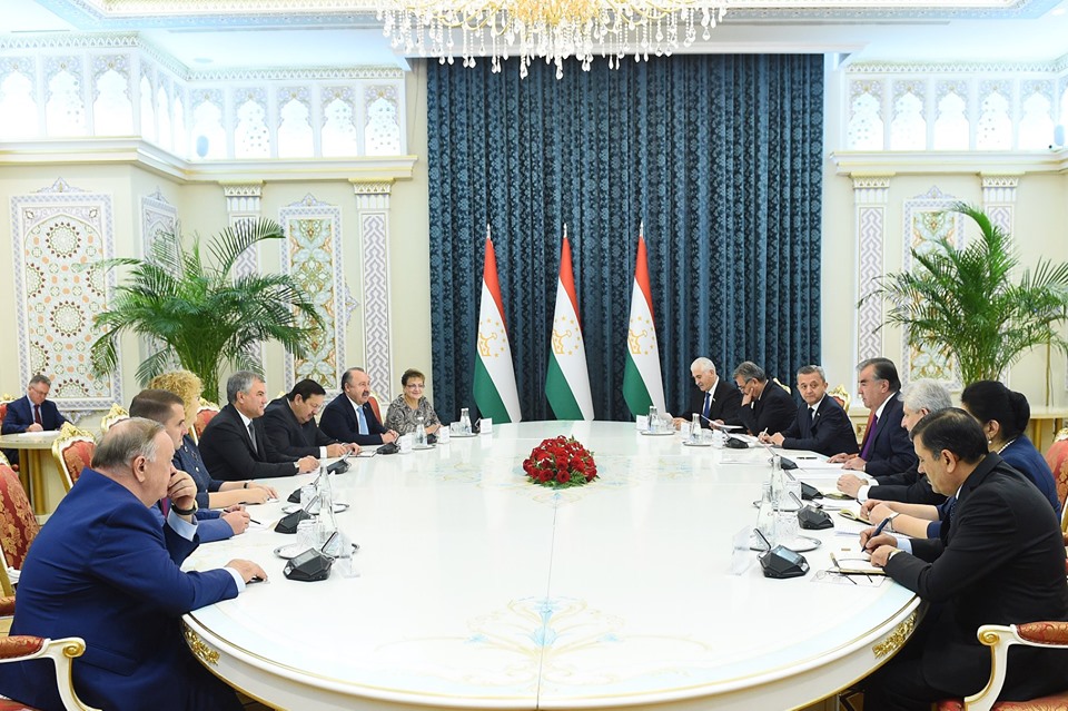 На встрече были обсуждены текущее состояние и перспективы развития таджикско-российских двухсторонних и многосторонних отношений, сообщает пресс-служба главы государства. Стороны отметили важность укрепления межпарламентских связей в рамках стратегического партнерства, как фактор содействия в развитии всего комплекса многогранного сотрудничества между двумя странами.