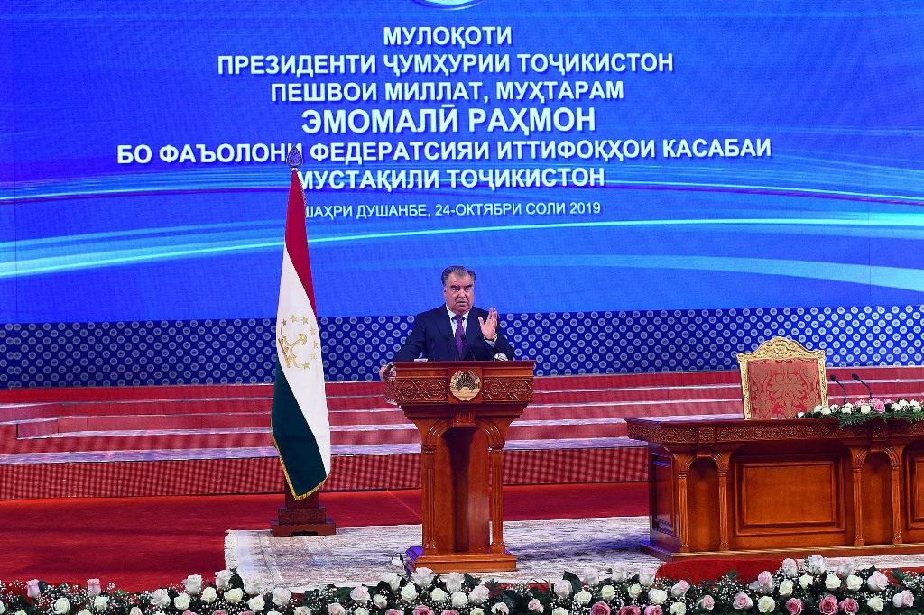 «Профессиональные союзы, как массовая организация, должны осуществлять свою миссию по защите достижений государственной независимости, стабильности, единства, защите интересов членов профсоюзов и созданию достойных условий жизни для каждого работника», — сказал 24 октября президент Таджикистана Эмомали Рахмон на встрече с руководителями и активистами Федерации независимых профессиональных союзов республики в «Кохи Борбад».