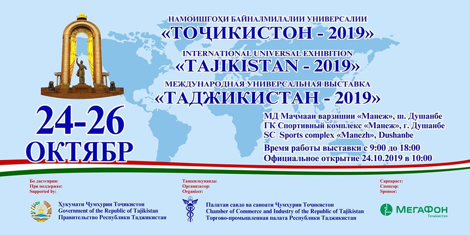 В эти дни продолжается международная универсальная выставка «Таджикистан-2019», которая проходит по адресу в Спортивном комплексе "Манеж" (ул, Спортивная-2).