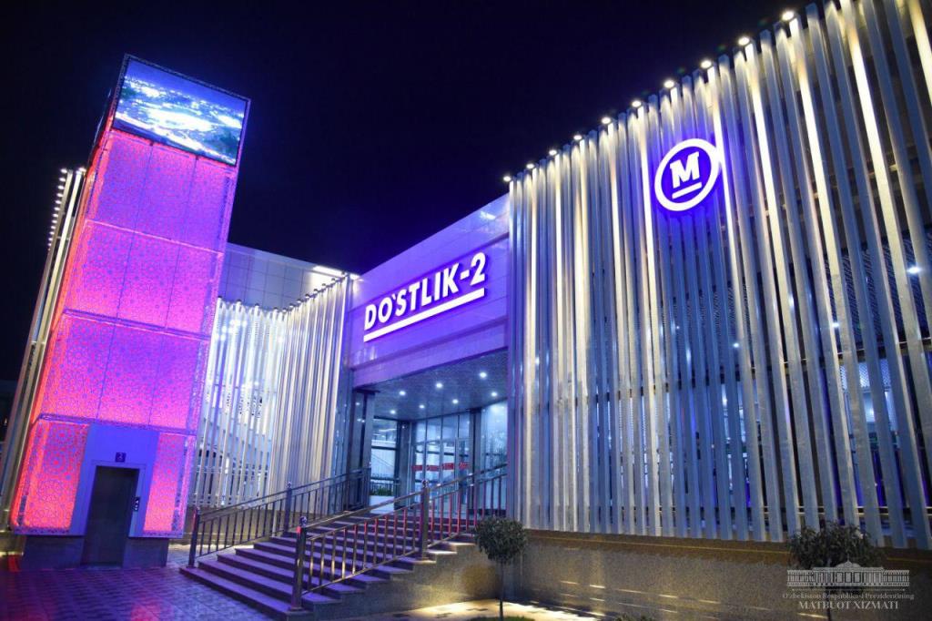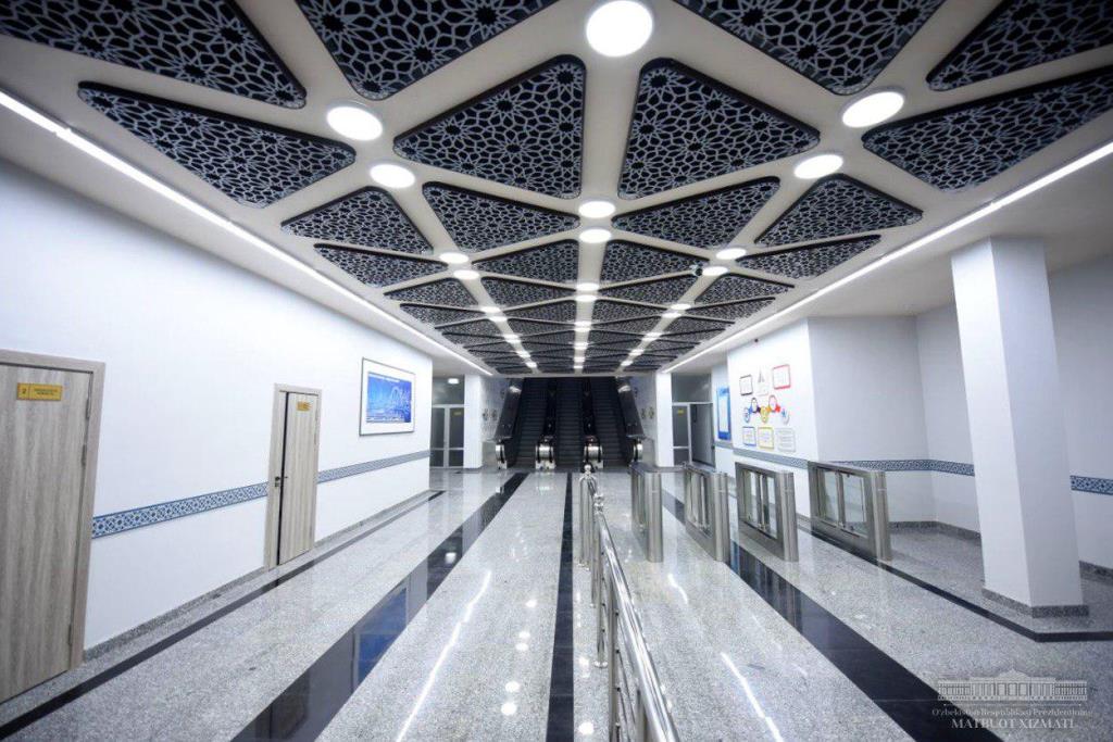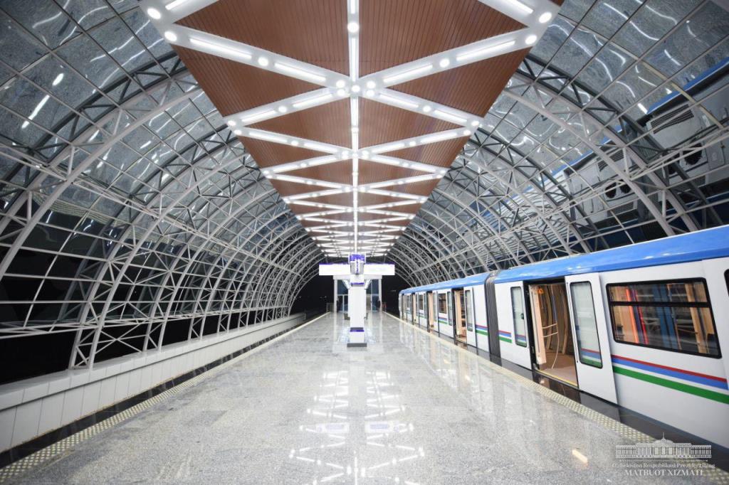 Глава государства совершил поездку между этими станциями на новом подвижном составе, ознакомился с созданными на станциях условиями. Станции оснащены по последнему слову техники, турникетами с возможностью бесконтактной оплаты за проезд, эскалаторами. На оставшемся отрезке до рынка Куйлюк завершена установка несущих опор, продолжается установка балок и строительство станций.