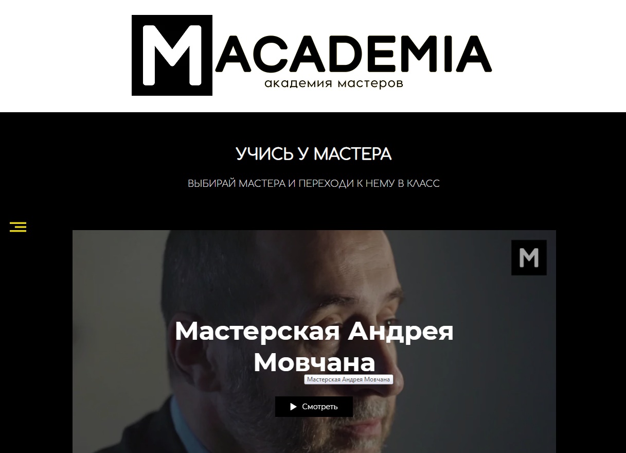 Онлайн адрес «Macademia» — www.macademia.online. Один курс — это более 8 часов видео-лекций. Каждая лекция посвящена отдельному вопросу в рамках заданного курса.