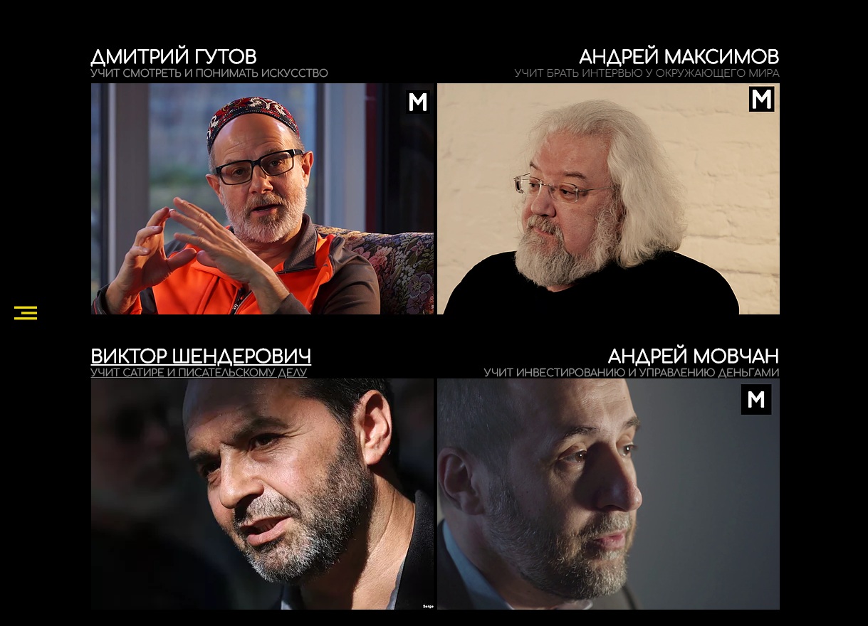 По словам Шоди, планируется ещё больше сфер для обучения, но в силу того, что проект только запустился, сейчас к оплате доступна только «мастерская» Андрея Максимова – «Как брать интервью у окружающего мира».