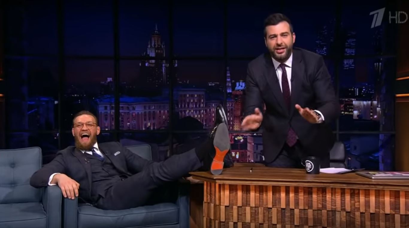 Ведущий Иван Ургант попросил Конора пригласить на его шоу Хабиба Нурмагомедова — тот ни разу не был гостем его предачи. Конор закинув ноги на стол Урганта сказал: «Хабиб, если ищешь мою локацию, то я прямо здесь!».