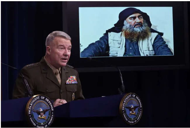 Военный подтвердил предыдущие сообщения о том, что самого аль-Багдади нашли в туннеле внутри комплекса. Тот покончил с собой, подорвав себя вместе с двумя детьми (а не тремя, как ранее считали американцы). При этом Маккензи в ответ на вопросы журналистов отказался опровергать или подтверждать слова Дональда Трампа, что лидер ИГ перед смертью «плакал, причитал и кричал».