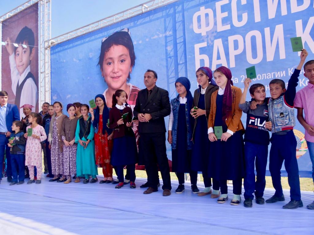 ЮНИСЕФ при поддержке делегации Европейского Союза в Таджикистане устроили праздник для детей. Кроме свидетельств о рождении, детям раздавались школьные рюкзаки и принадлежности, подаренные корейской организаций “Good Neighbors”
