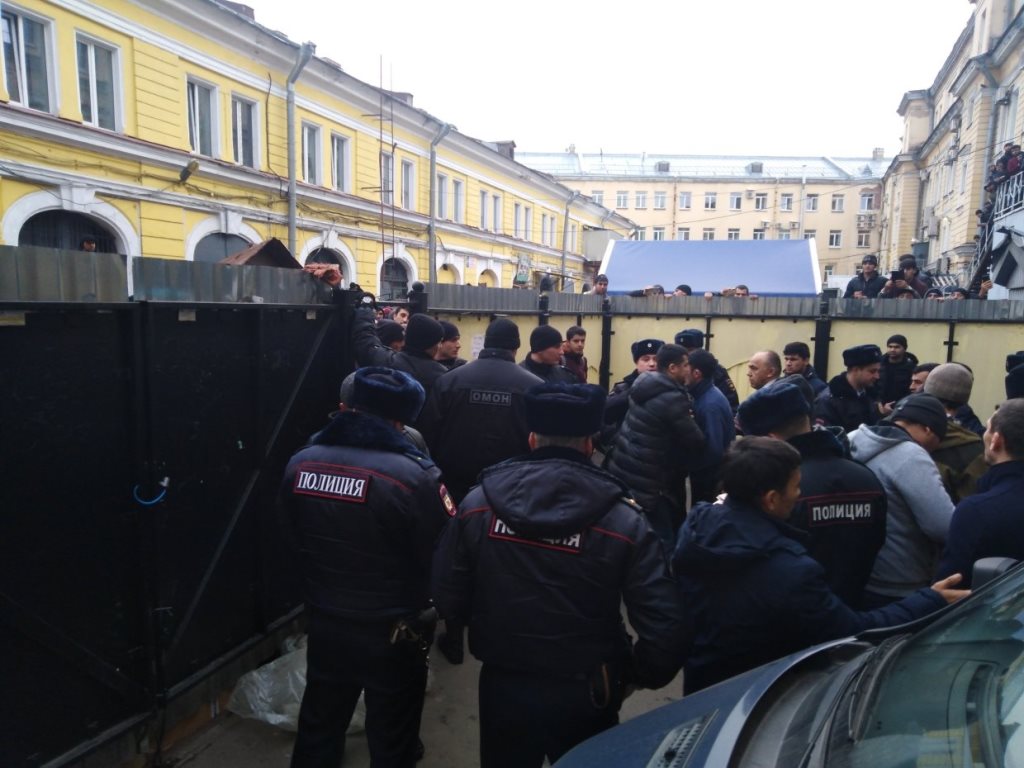 По данным “Фонтанки”, правоохранители заполнили, как минимум, один автомобиль. Гастарбайтеры отвечали на действия ОМОНа свистом и возмущенными выкриками.