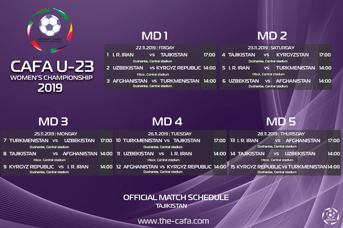 Свой стартовый матч в чемпионате женская олимпийская сборная Таджикистана (U-23) проведет в пятнице, 22 ноября, против команды Ирана. Эта встреча пройдет на Центральном стадионе Душанбе и начнется в 17:00 часов.