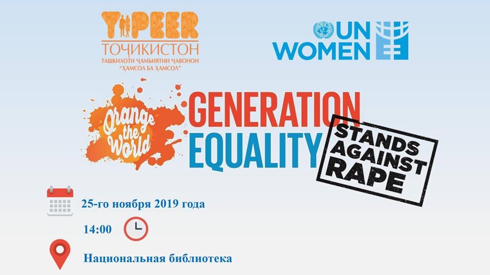 В рамках Европейской недели в Таджикистане в понедельник, 25 ноября, стартует Всемирная кампания, объединяющая более 160 стран мира — 16 дней активизма против гендерного насилия «Оранжевый день». В этом году кампания проходит под лозунгом «Равенство» и выступает против изнасилований с хэштегом #orangetheworld, #16days, #GenerationEquality