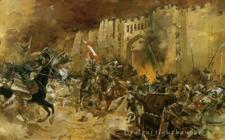 В том же 588 г.х. (1192 г.н.э.) Гиясиддин вместе с войском Шахабиддина, разбив армию Хорезмшахов в долине реки Мургаб, завоевал почти всю Среднюю Азию.