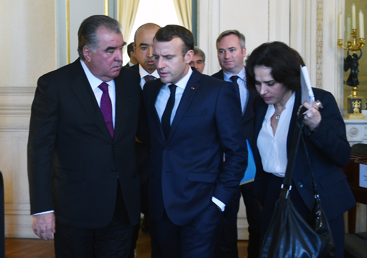 ИЗОБРАЖЕНИЕ Эмомали Рахмон и Эммануэль Макрон на встрече в Париже, 8 ноября 2019 года