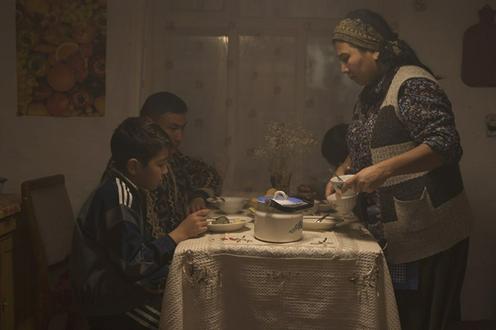 В фильме есть один замечательный эпизод, который длится целых семь минут. Азат едет в бричке с отцом своего одноклассника: они вместе распиливали доски и теперь возвращаются домой. Проезжая через поселок, они говорят о трудных девяностых, о том, что тогда многие уехали из аула, побросав свои дома. Мы, зрители, видим панораму этих домов. Но этого мало — мы как будто вместе с героями едем на этой бричке спиной вперед, и оттого нам дискомфортно. Хочется развернуться всем телом, увидеть коня и дорогу впереди, а не заваливаться назад. И вот этот-то дискомфорт на чисто физическом уровне поддерживает драматическое ощущение от рассказа о неблагополучии поселка.
