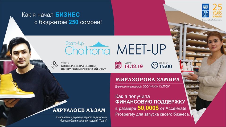 — Отличная возможность для начинающих предпринимателей! В Душанбе пройдет Startup Choihona Meet-up 2. Он начнется в 15:00 в конференц-зале бизнес центра «Созидание» (2 этаж). Там выступят молодые, амбициозные и энергичные предприниматели, которые раскроют вам секреты успешного старта и развития своего бизнеса. Вход свободный. Подробности по телефону: 93-999-30-09.