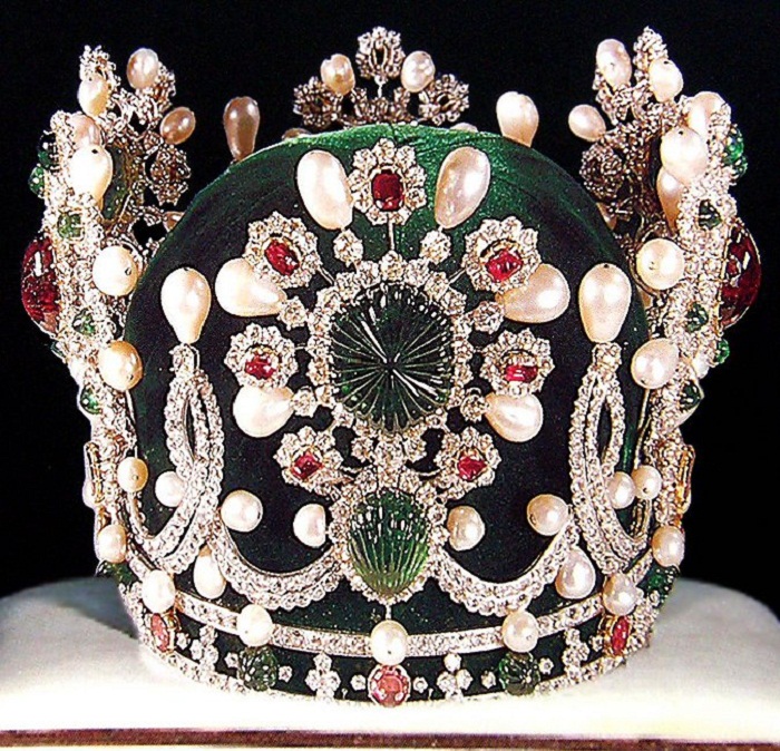 Роскошная корона сверкала, усыпанная драгоценными камнями, одних бриллиантов на ней было около полутора тысяч. В центре ее красовались огромные изумруды.