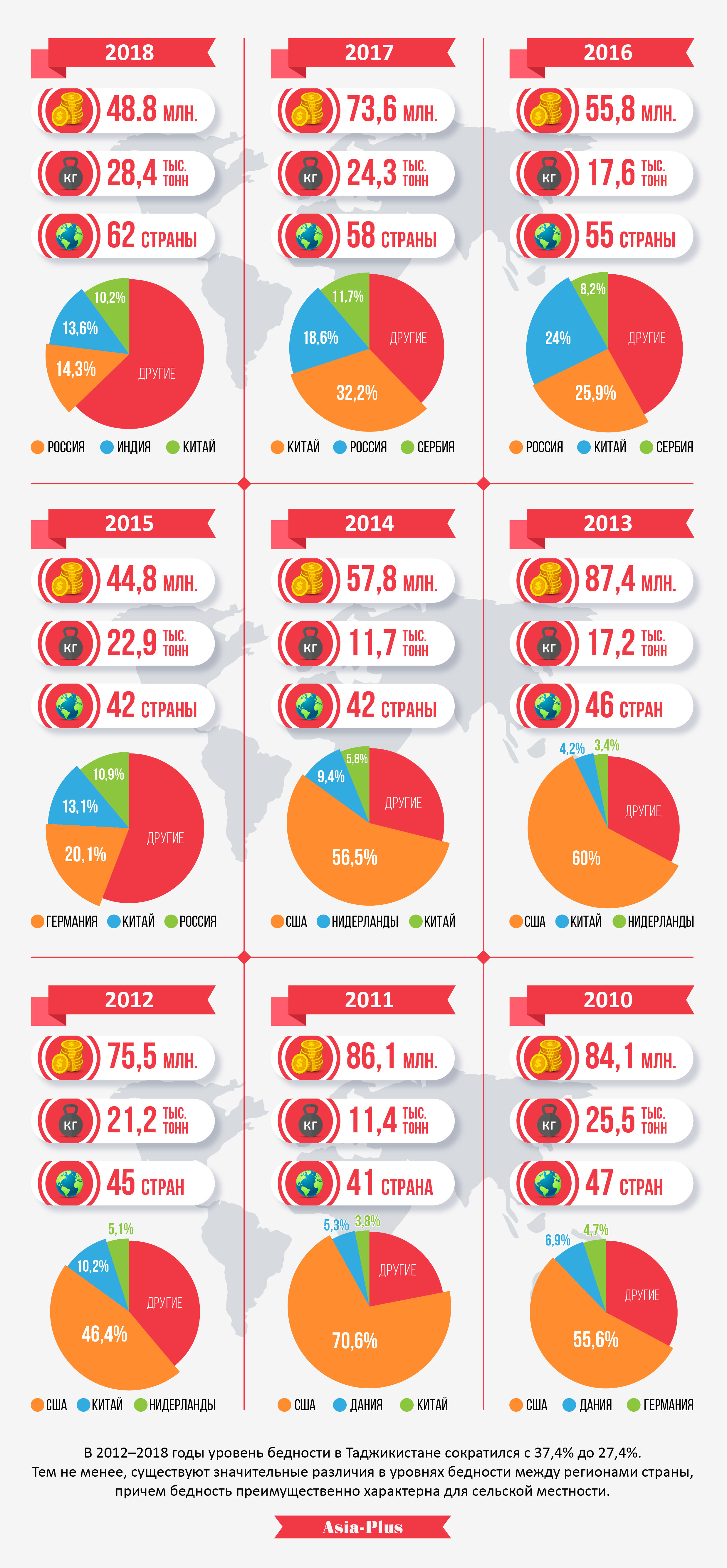 В 2012–2018 годах уровень бедности в Таджикистане сократился на 10 процентных пунктов — с 37,4% до 27,4.