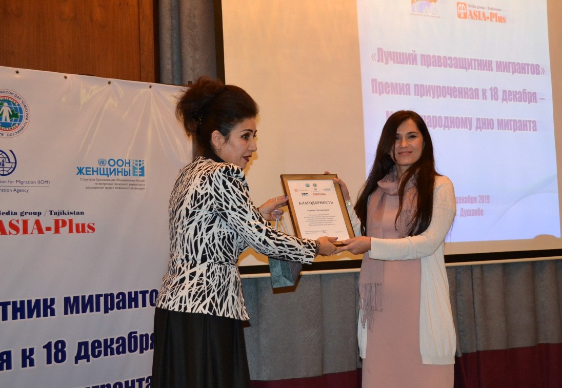 Премия «Лучший правозащитник мигрантов» уже второй год проходит по инициативе ОО «Центр по правам человека» при поддержке министерства труда, миграции и занятости населения Таджикистана, Уполномоченного по правам человека в РТ, Института «Открытое Общесто» — Фонд содействия в Таджикистане, Международной организации по миграции в Таджикистане, а также ООН Женщины в Таджикистане. Информационным партнером выступает медиа группа «Азия-Плюс».