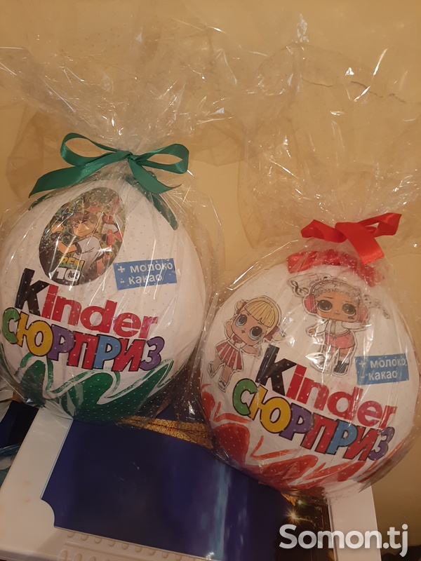 Очень много предложений по изготовлению необычной подарочной упаковки "Большой Киндер". Предлагаются разные размеры от 20 см до 50 см. Срок изготовления киндера до 4 дней, заказать можно через Viber по номеру 93 3290770. Стоимость от 65 сомони.