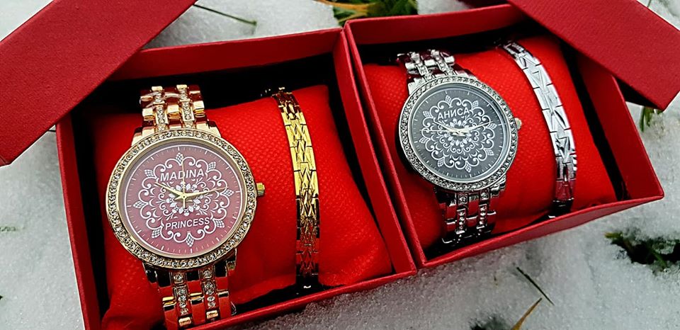 К новому году podarki.tj предлагает своим клиентам именные часы. При покупке часов, браслет в подарок. Также имеется подарочная коробка и бесплатная доставка. Сроки изготовления сутки, цена 119 сомони.
