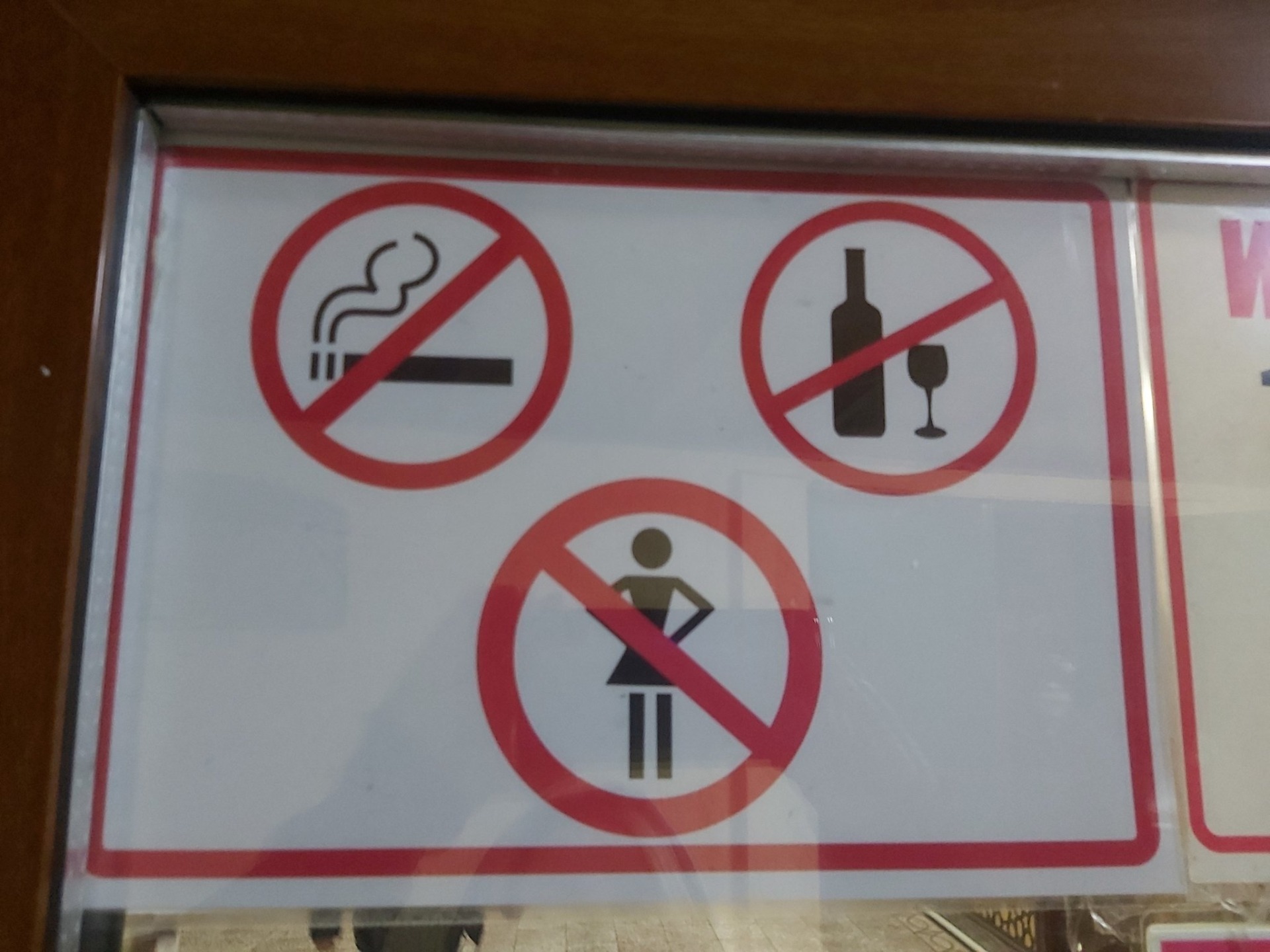 В социальных сетях в Кыргызстане 20 декабря распространилась фотография таблички у входа в чайхану:  согласно табличке, в заведении запрещено «распивать спиртные напитки, курить и входить женщинам».