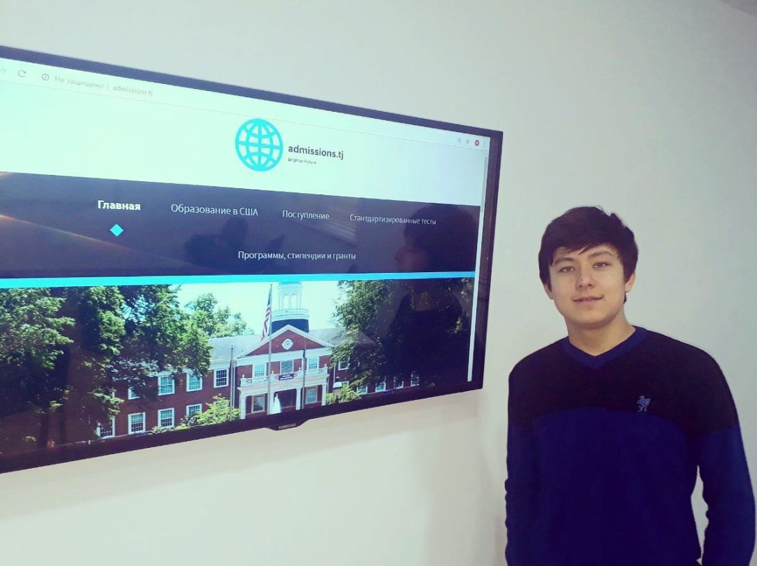 Могу привести примеры нескольких успешных проектов, которые разработали наши ребята – в основном школьники 9-11 классов. Как мы знаем, обучение в университетах США является одним из самых желанных путей будущего образования для учащихся по всему Таджикистану. Чтобы помочь студентам лучше понять процесс приема студентов и начать подготовку, Амидхон Бабаев, ученик 11-го класса, запустил бесплатный онлайн-ресурс на русском языке под названием  «Admissions.TJ», где размещена информация о поступлении, начиная от общего заявления и заканчивая информацией о стандартизированных тестах и стипендиях.