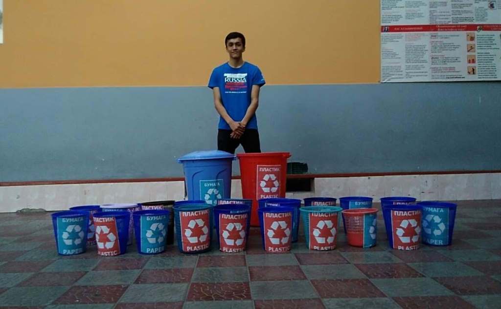 Проект «Внедрение системы управления отходами в школе путем установки мусорных баков» был реализован учащимся одной из худжандских частных школ Манучехром Насимовым.  Получив поддержку от администрации школы, Манучехр установил 40 урн для утилизации отходов из пластика, бумаги и общего мусора в 20-ти классах школы, и наладил  вывоз отходов  в предприятия для переработки бумаги и пластика. Чтоб внедрить культуру обращения и переработки отходов, Манучехр провел презентацию для учащихся. В результате школа частично решила проблему загрязнения окружающей среды и получила дополнительное финансирование.