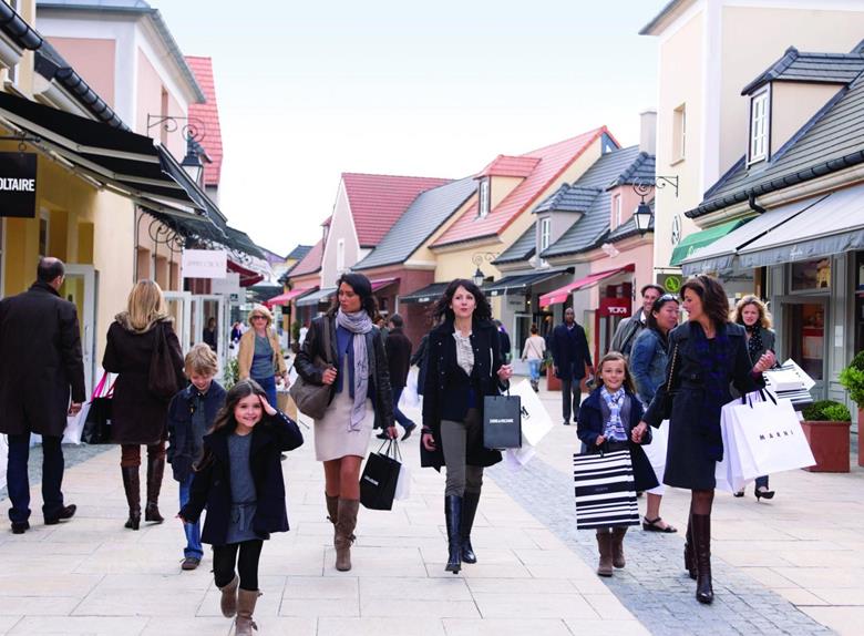 Самые крупные парижские аутлеты — La Vallee Village —90 магазинов люксовых и массовых марок, в основном вещи из прошлых коллекций и неходовых размеров, Marques Avenue Troyes или улица Марок — 200 магазинов и 400 брендов одежды, косметики, парфюмерии, декора, мебели, Usines Center Nord —торговый центр со 120 магазинами и 500 брендами одежды.