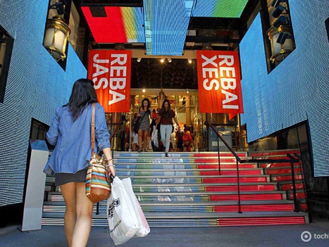 Символическая надпись сезона скидок REBAJAS (скидки) или OFERTA (специальное предложение)! Еще одна приятная новость для тех, кто еще не был в Испании — уже несколько лет по Барселоне курсируют специальные автобусы по шопинг-маршруту, где можно купить вещи со скидками до 90%.