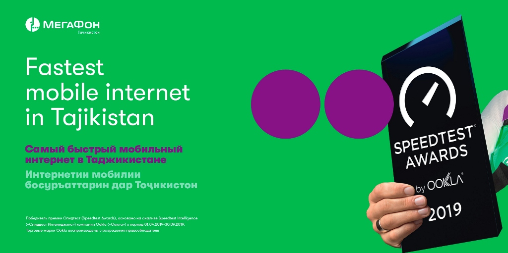 Компания Ookla, разработчик популярного мобильного приложения SpeedTest, опубликовала итоги независимого исследования скоростей мобильного интернета. Впервые в международный рейтинг Ookla включены данные по операторам Республики Таджикистан. Лучшие результаты в 2019 году по итогам замеров интернет-пользователей продемонстрировал МегаФон Таджикистан.