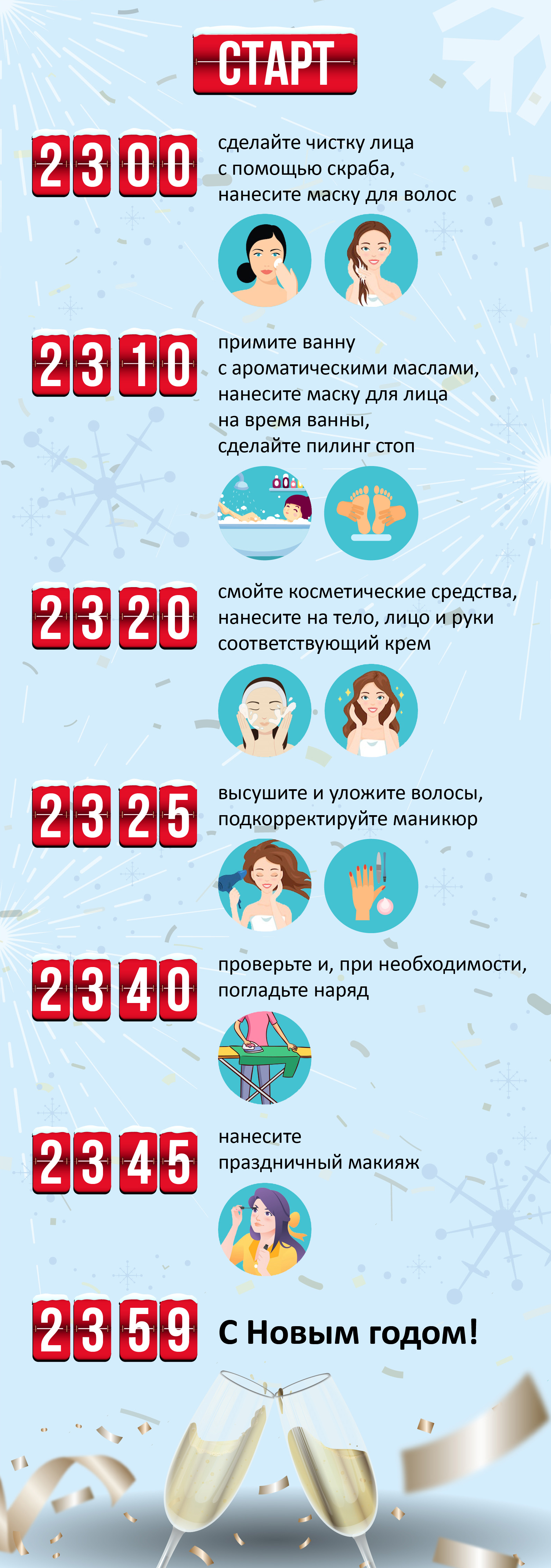 До боя курантов осталось всего ничего. Вы украсили дом, успели наготовить кучу разных вкусностей, даже мужа и детей умыли и одели. Осталось привести в порядок себя. И у нас есть на это час…