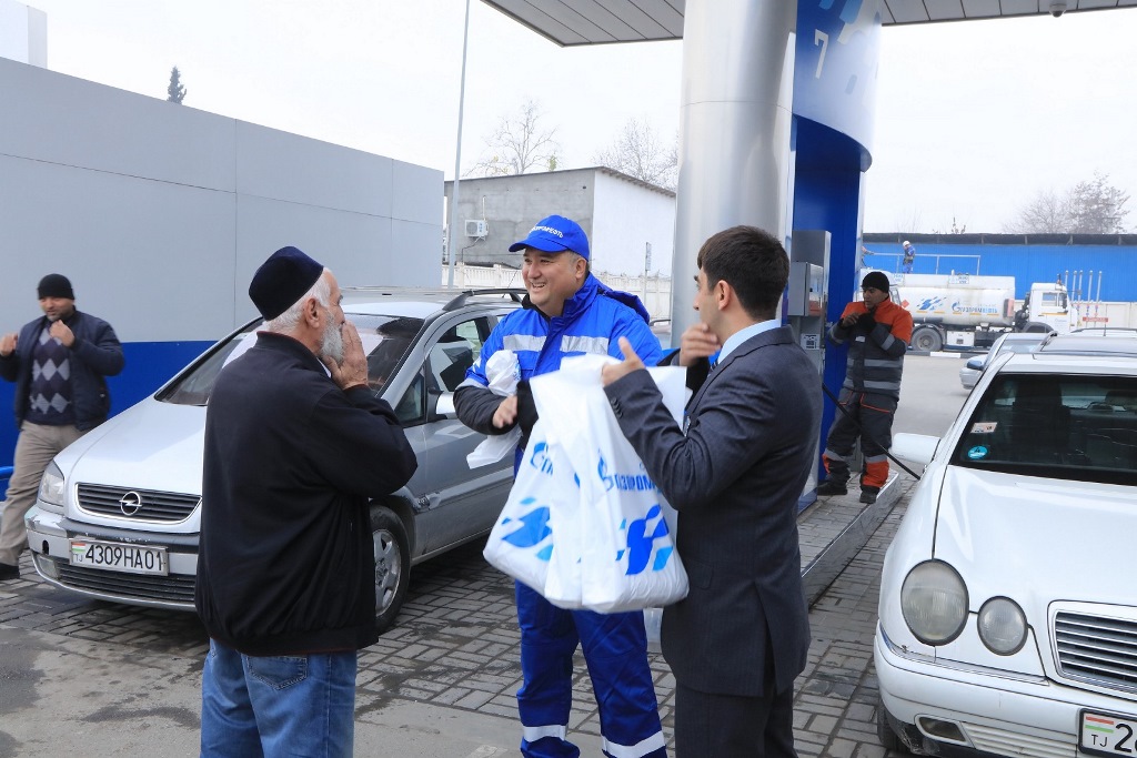 Параллельно с другими менеджерами «Газпром нефть — Таджикистан», клиентов обслуживал генеральный директор Фарход Мирзоев. Беззаботные клиенты даже представить не могли, кто сегодня заправляет их автомобили и чистит лобовые стекла. Лидер предприятия приветливо беседовал с каждым клиентом, и они с удовольствием высказывали свои пожелания. Многие из клиентов так и не догадались, с кем они беседовали, и кто их обслуживал.