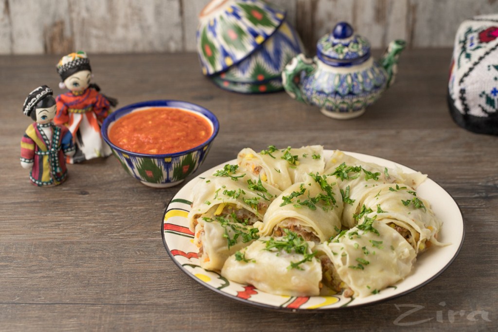 Таджики придумали свой вариант приготовления обычных русских пельменей – жарить их. Начинка остаётся той же – фарш и лук. Тушбера жарят в кипящем масле до образования золотистой корочки.